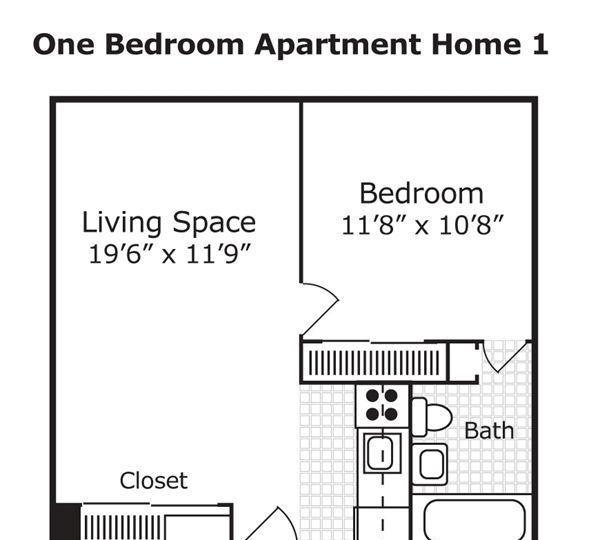 1 bed, 1 bath, 560 sqft