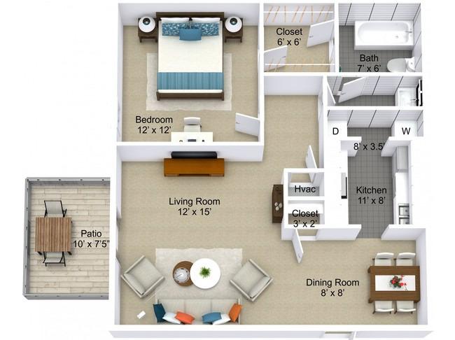 1 bed, 1 bath, 347 sqft