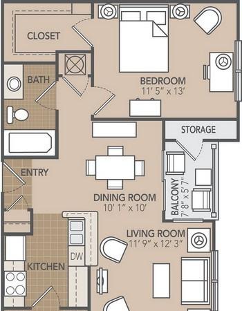 1 bed, 1 bath, 446 sqft