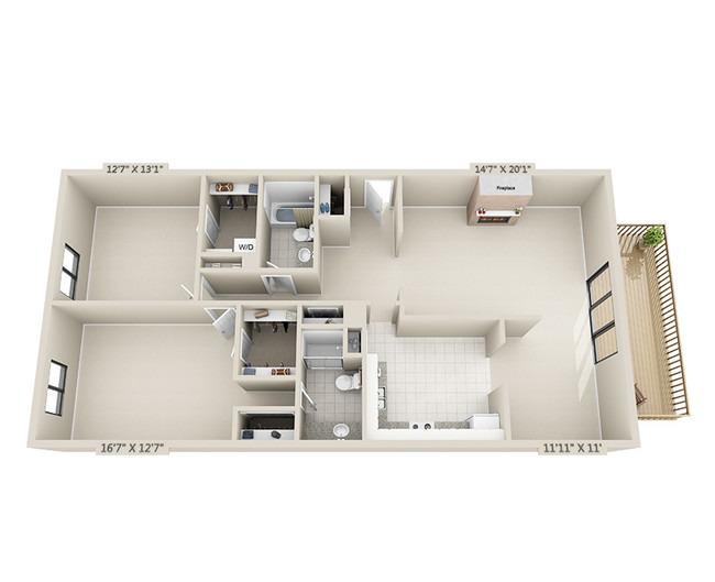 1 bed, 1 bath, 411 sqft