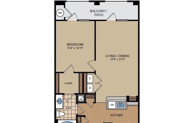 1 bed, 1 bath, 635 sqft