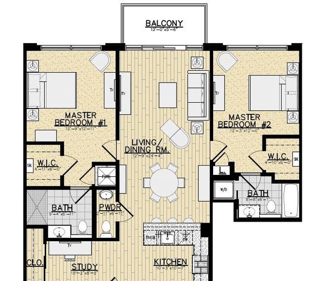 1 bed, 1.5 baths, 1212 sqft