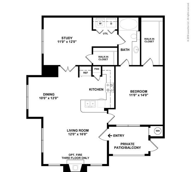 1 bed, 1 bath, 457 sqft