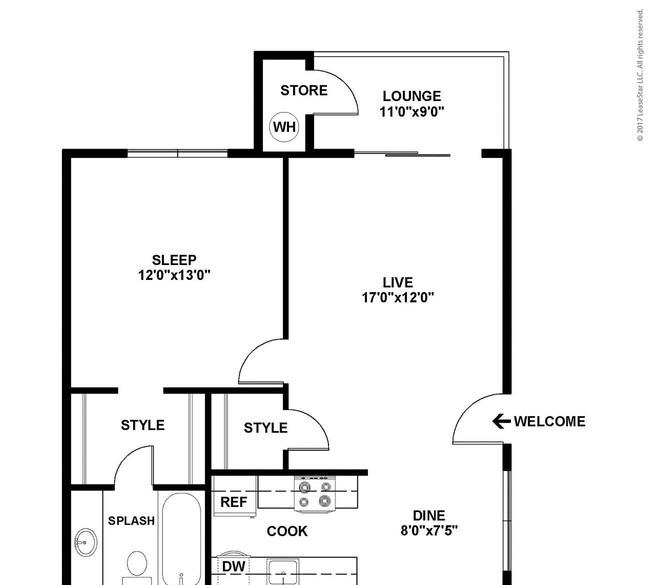 1 bed, 1 bath, 641 sqft