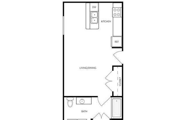 2 beds, 2 baths, 580 sqft