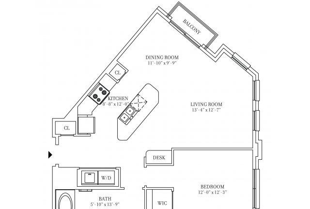 2 beds, 2 baths, 580 sqft