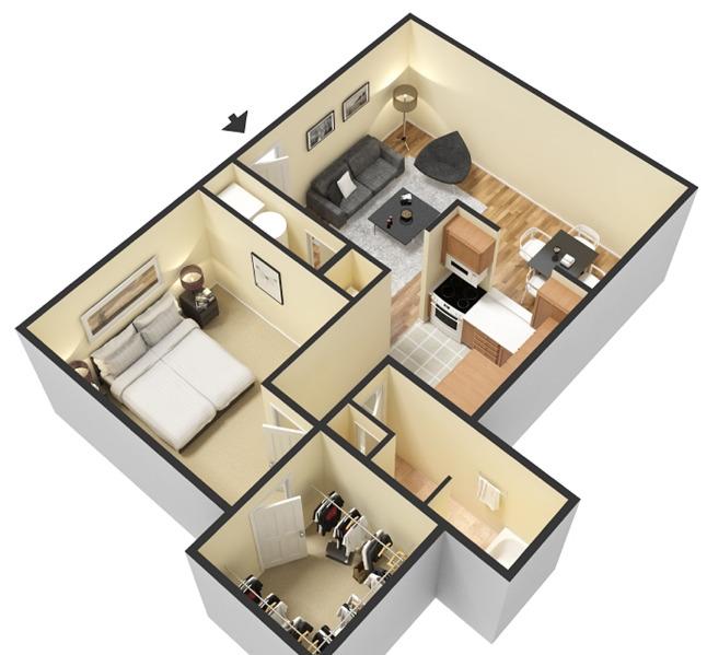 1 bed, 1 bath, 446 sqft