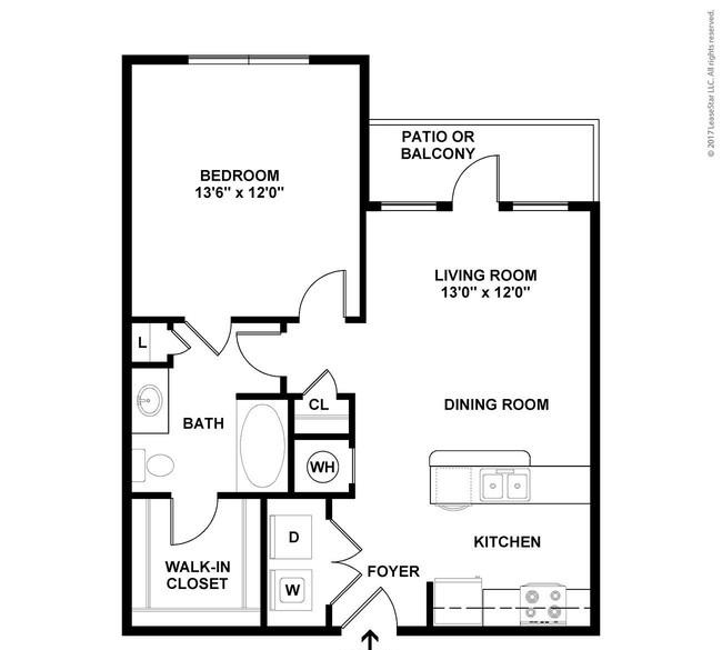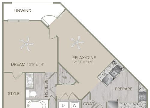 1 bed, 1 bath, 518 sqft