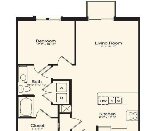 1 bed, 1 bath, 387 sqft