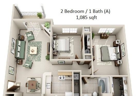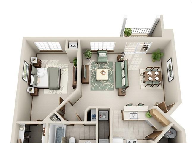 1 bed, 1 bath, 466 sqft