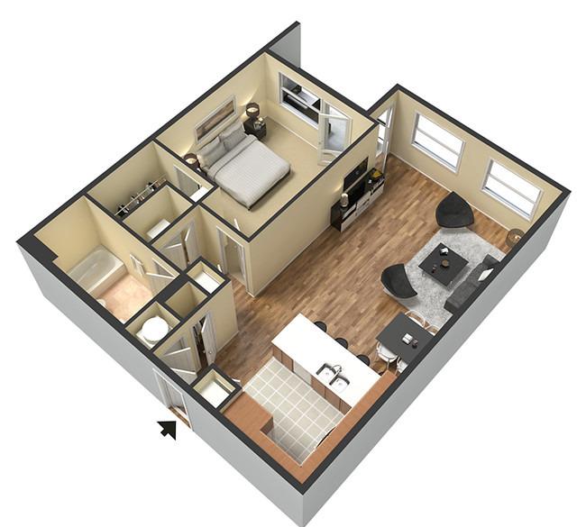 2 beds, 2 baths, 570 sqft