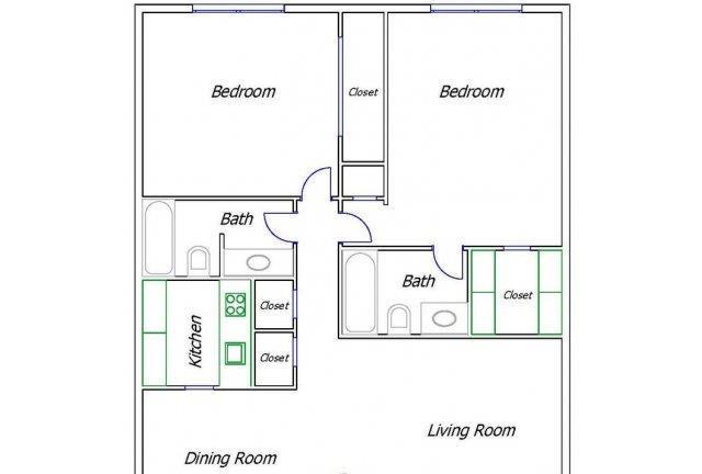 2 beds, 2 baths, 250 sqft