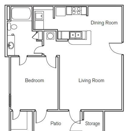 1 bed, 1 bath, 457 sqft