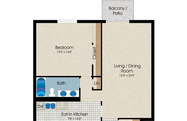 1 bed, 1 bath, 1222 sqft