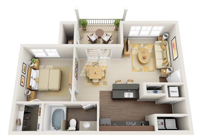 1 bed, 1 bath, 593 sqft