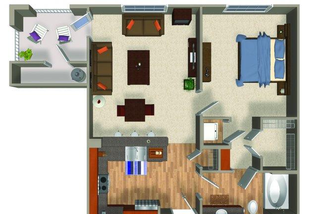 1 bed, 1 bath, 922 sqft