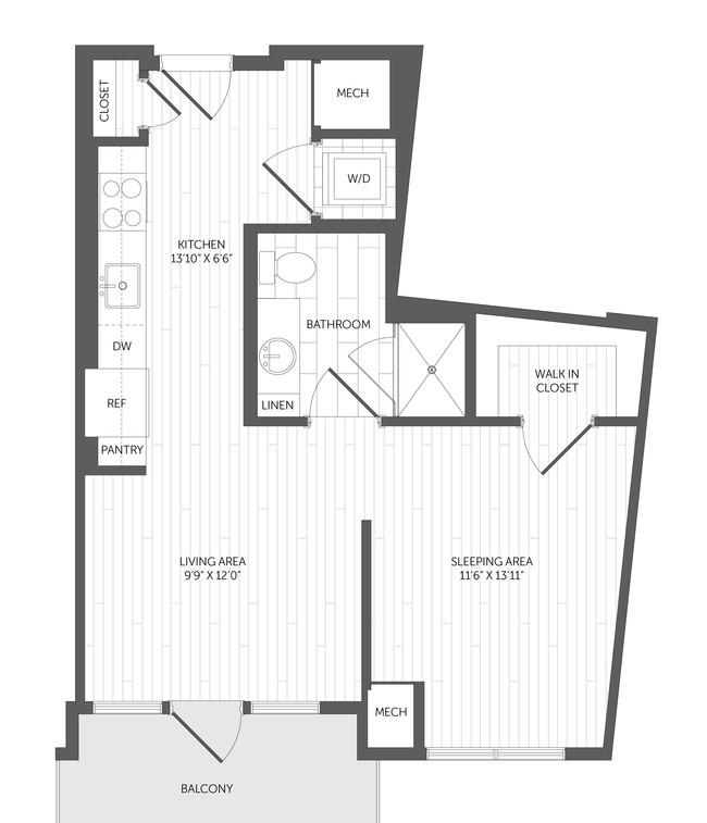 1 bed, 1 bath, 1077 sqft