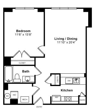 1 bed, 1 bath, 864 sqft