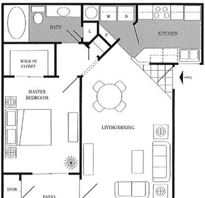 1 bed, 1 bath, 484 sqft