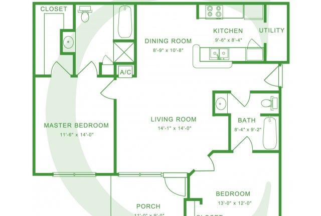 2 beds, 2 baths, 443 sqft