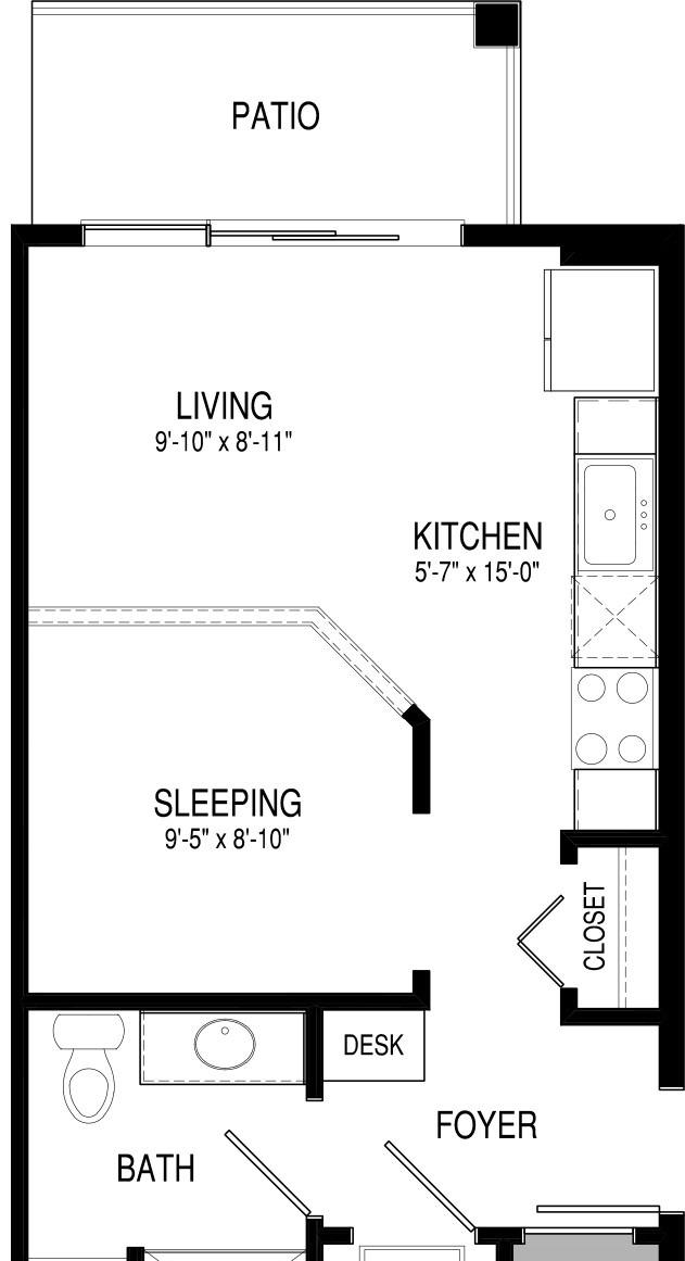 1 bed, 1 bath, 548 sqft