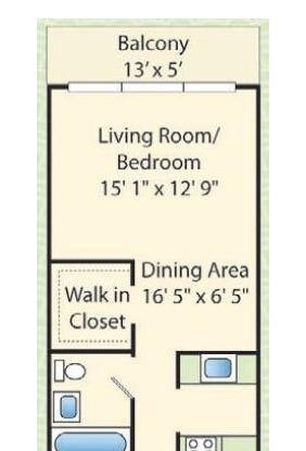 1 bed, 1 bath, 461 sqft