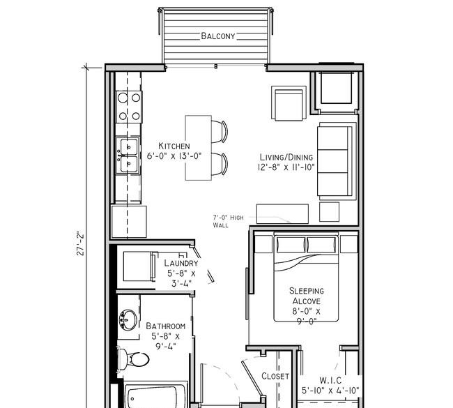 1 bed, 1 bath, 520 sqft