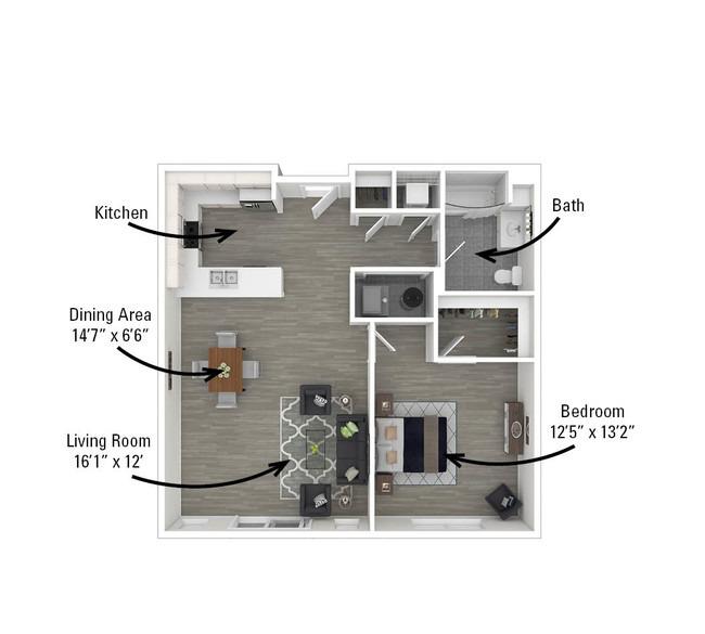 1 bed, 1 bath, 508 sqft