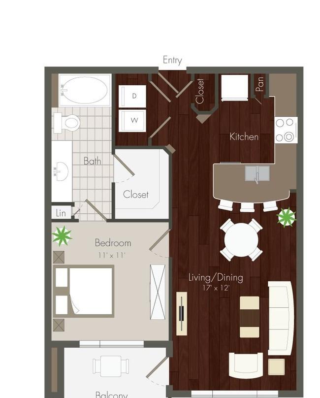 1 bed, 1 bath, 676 sqft