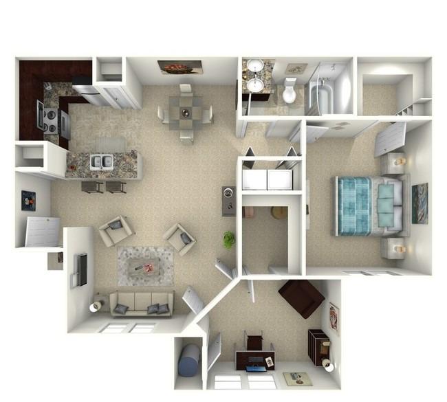 2 beds, 2 baths, 534 sqft