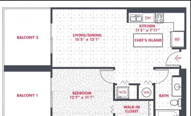 1 bed, 1 bath, 651 sqft