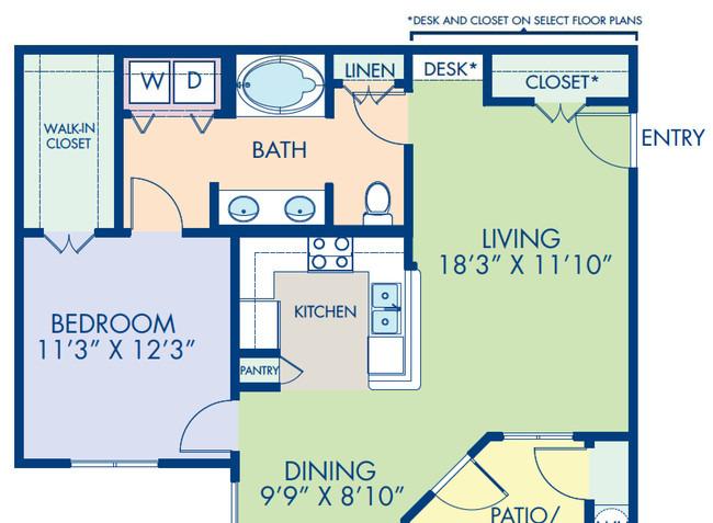 1 bed, 1 bath, 638 sqft