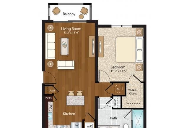 1 bed, 1 bath, 607 sqft