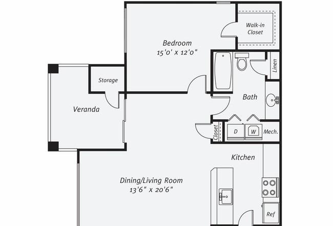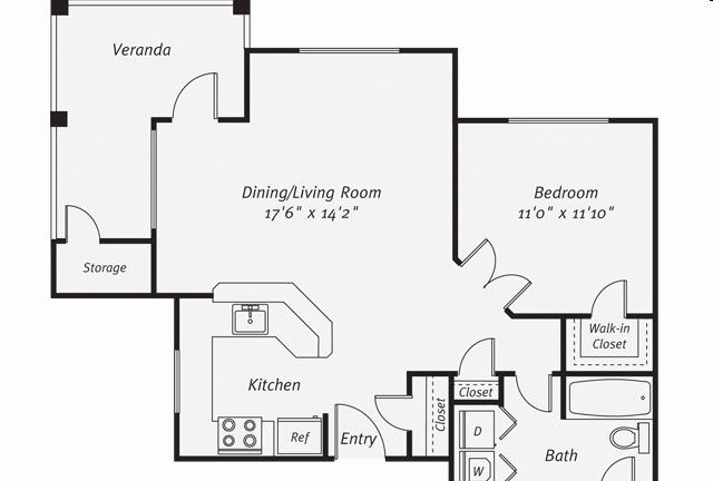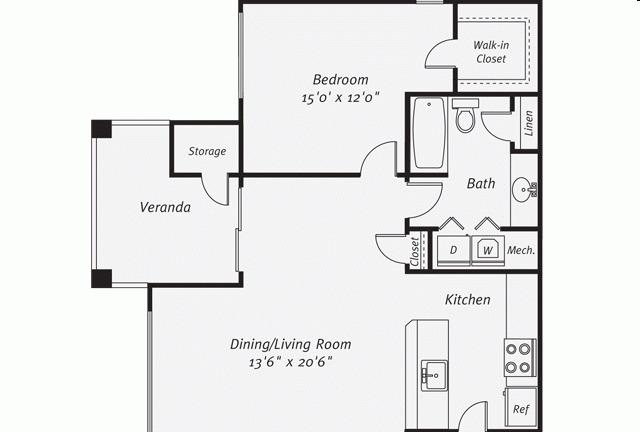 2 beds, 2 bath, 592 sqft