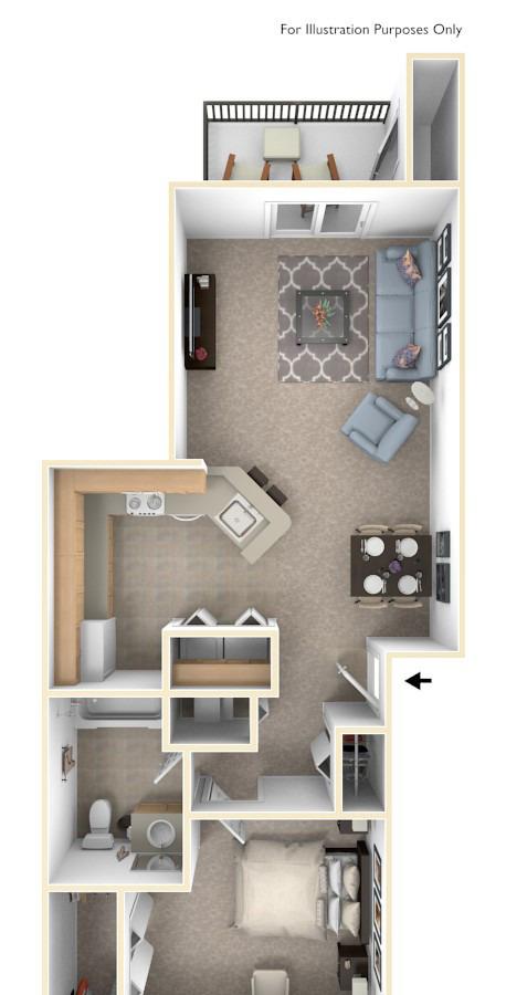 1 bed, 1 bath, 278 sqft