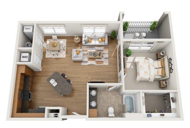1 bed, 1 bath, 621 sqft